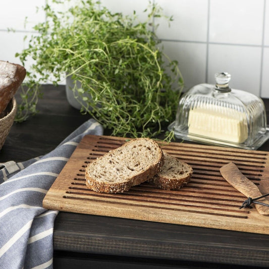 Tabla para Cortar Madera de Acacia con Ranuras 25x38 cm