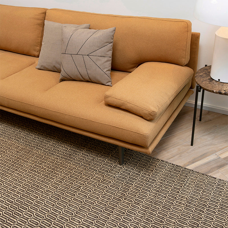 Alfombra de lana color charbon y yute, tejida a telar formando una textura única. Alfombra con backing antideslizante.