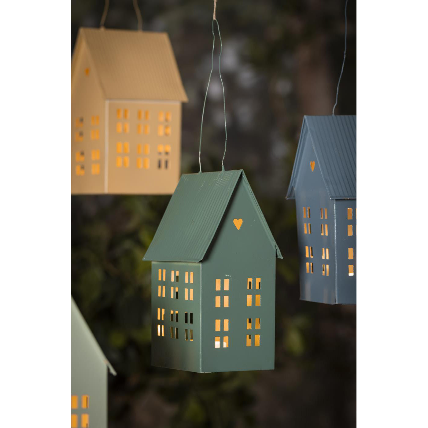 Encantador portavela en forma de casa. Fabricado en metal robusto, se presenta como una fusión armoniosa de funcionalidad y diseño. Las diferentes opciones de color te permiten expresar tu estilo personal. Puedes colgar los portavelas y crear un ambiente aireado y animado, perfecto para los cálidos días de verano.
